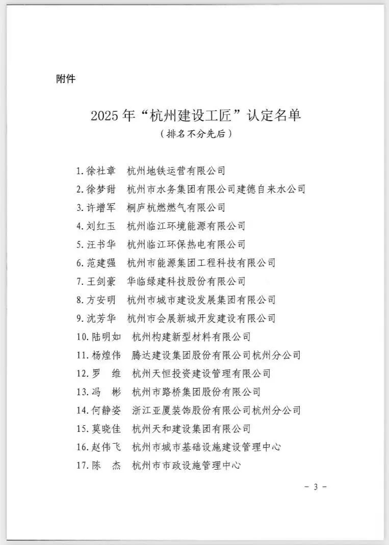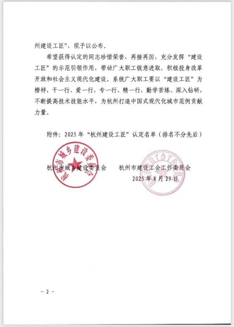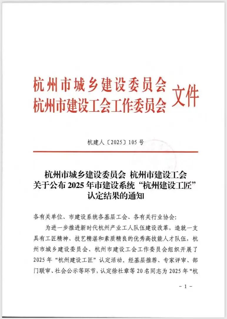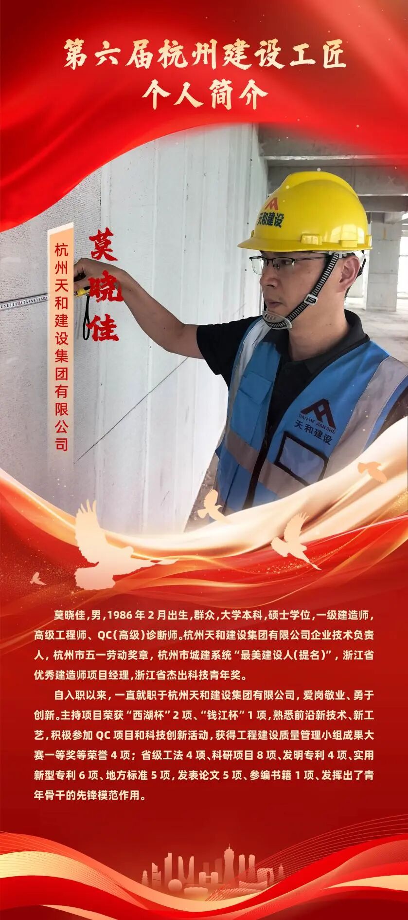 杭州市建筑行业工会联合会三位候选人获第六届“杭州建设工匠”称号